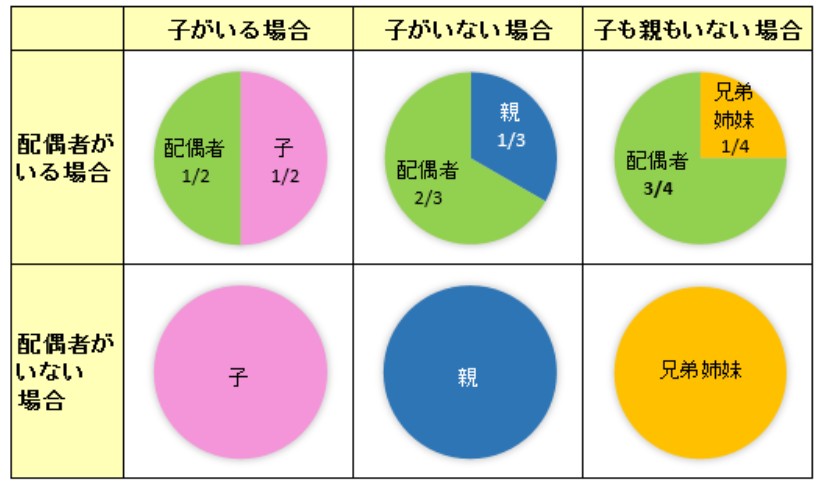 (2) (1)以外(子のみ、配偶者のみ、配偶者と親、配偶者と子)の場合は、被相続人の財産の1/2